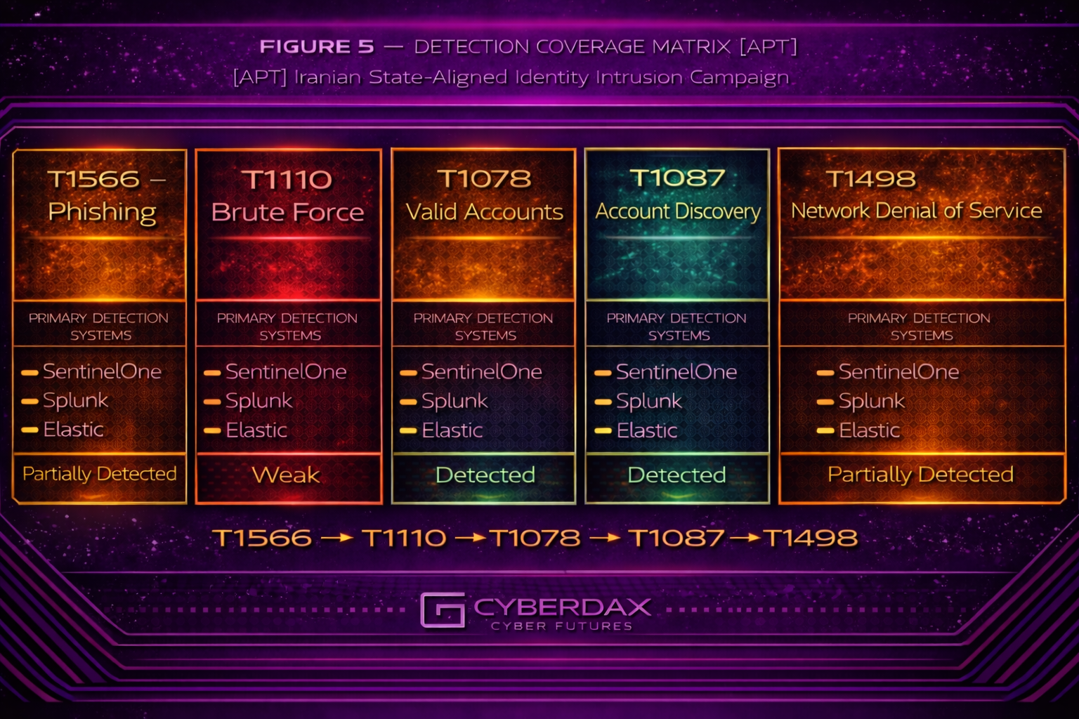 · Iranian state-aligned activity prioritizes credential acquisition over exploit-based intrusion, enabling scalable and repeatable enterprise targeting (T1566 – Phishing, T1078 – Valid Accounts)