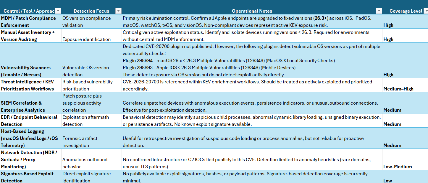 CVE-2026-20700 represents a priority, in-the-wild exploited Apple endpoint vulnerability with financial exposure driven by rapid response, VIP-focused investigation, and compliance-driven escalation, not broad operational collapse.